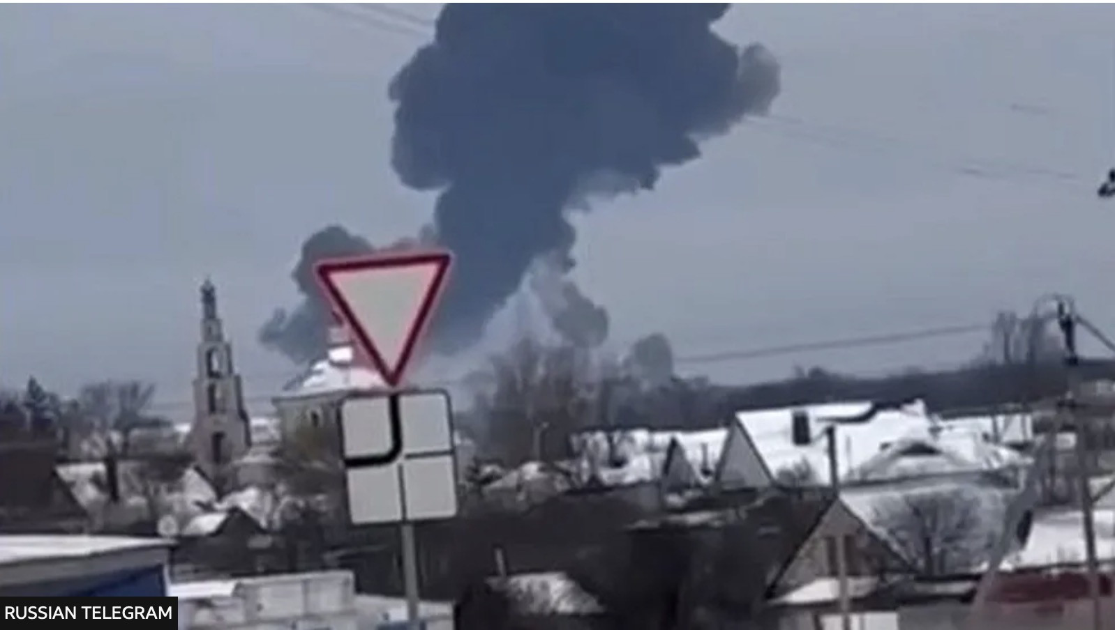 Một đoạn video được các hãng truyền thông đăng tải cho thấy khoảnh khắc chiếc máy bay đâm đầu xuống đất ở gần làng Yablonovo, quận Korocha của Belgorod.