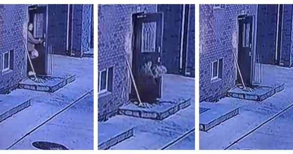 Hình ảnh cho thấy, người phụ nữ họ Bao vừa bước chân ra khỏi cửa nhà thì bất ngờ "biến mất". Hóa ra, bà đã rơi xuống một hầm thông gió nằm ngay trước cửa. Rất may mắn, hầm thông gió chỉ sâu hơn 1 mét nên người phụ nữ họ Bao đã không bị thương.