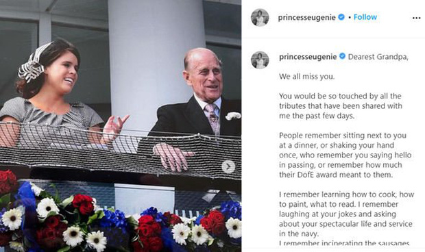 Hoàng tế Philip đã ra đi thanh thản tại Lâu đài Windsor bên cạnh Nữ hoàng. Mặc dù Hoàng gia Anh hy vọng ông sẽ đón sinh nhật lần thứ 100 vào tháng 6, nhưng ông đã không thể gắng gượng thêm và ông chọn cách ra đi ở nơi ông đã gắn bó nhiều năm thay vì ở bệnh viện. Em gái của Beatrice, Công chúa Eugenie, cũng đã viết một lời tri ân công khai cảm động tới cố Công tước xứ Edinburgh trên tài khoản Instagram cá nhân. Trong bài đăng đầy cảm xúc ấy, cô cảm ơn ông nội vì sự cống hiến của ông cho gia đình và nhấn mạnh rằng: "Tất cả mọi người sẽ nhớ ông".