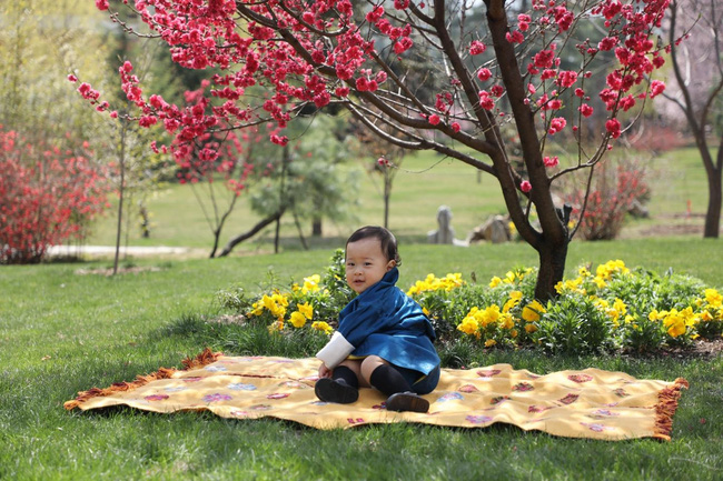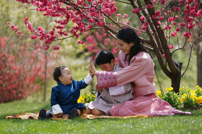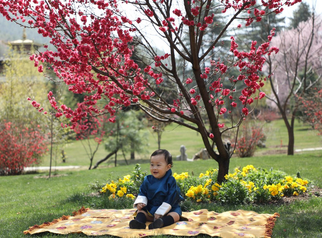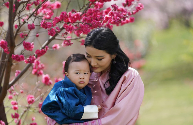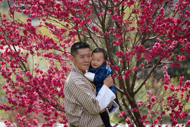 Tiểu hoàng tử của vợ chồng Quốc vương Bhutan chào đời ngày 19/3/2020. Được biết, những bức ảnh mới nhất của gia đình Hoàng hậu Bhutan được chụp dưới gốc cây đào nở rộ tại Cung điện Lingkana, ở thủ đô Thimphu. Trong bộ ảnh được chia sẻ có thể thấy, Quốc vương Jigme Khesar Namgyel Wangchuck hạnh phúc bế hoàng tử út Gyalsey Ugyen Wangchuck.