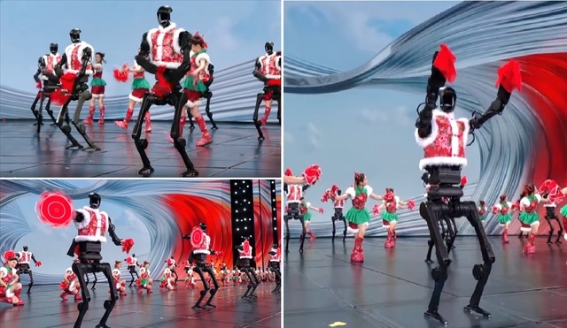 Có lẽ gây chú ý nhất với người dân Trung Quốc khi thấy dàn robot hình người của công ty khởi nghiệp Yushu Technology mặc áo khoác họa tiết đỏ đặc trưng của vùng Đông Bắc, xếp hàng múa lụa, xoay đĩa điêu luyện trên sân khấu chương trình Xuân Vãn 2025.