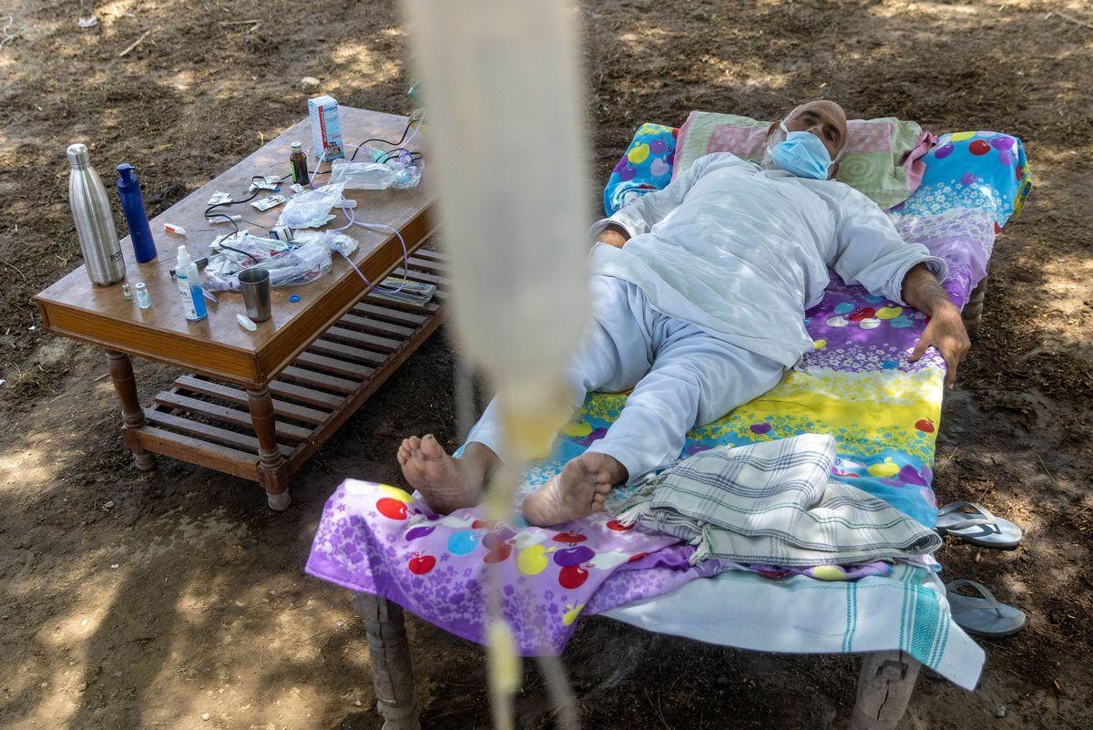 18/05/2021 15:42Không thể đến bệnh viện, bệnh nhân COVID-19 Ấn Độ đi dưới tán cây để tăng oxy