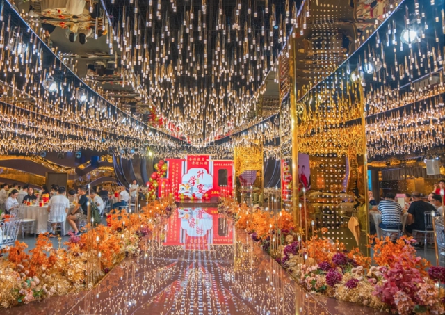 Theo những hình ảnh bị rò rỉ, có thể thấy sảnh tiệc có diện tích cực lớn và đã được lấp kín bàn ghế. Có một sân khấu chữ T kéo dài ở giữa, nối với sân khấu lớn phía trung tâm. Hai lối đi được trang trí bằng hoa tươi rực rỡ và trần phòng tiệc là những chùm đèn xa hoa. Menu trong bữa tiệc mừng đỗ đại học này cũng toàn các món "sơn hào hải vị". Theo một chuyên gia trong lĩnh vực tổ chức sự kiện, để tổ chức sự kiện quy mô lớn thế này cần cả một đội ngũ chuyên nghiệp, chi phí riêng cho phần trang hoàng tối thiểu 100.000 tệ (khoảng 350 triệu), đó là chưa kể đến chi phí ăn uống.