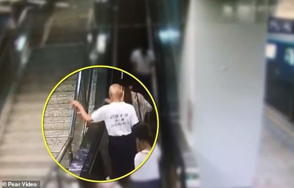 Đoạn video cho thấy cụ ông họ Li (73 tuổi), người mặc áo phông trắng, sau khi bước lên thang cuốn liền ngã về phía sau, vì ông bám nhầm vào tay vịn thang bộ thay vì tay vịn của thang cuốn.