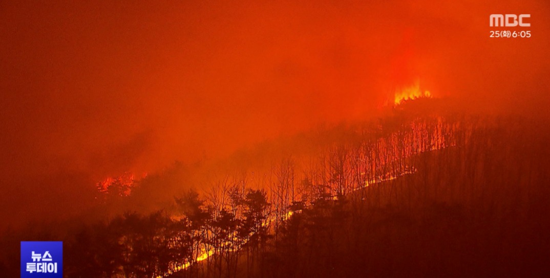 Theo Cơ quan Lâm nghiệp Hàn Quốc, đám cháy khởi phát vào ngày 22/3 tại hai ngọn núi thuộc Anpyeong-myeon và Angye-myeon, Uiseong-gun. Ngay sau đó, hàng chục trực thăng chữa cháy cùng nhân lực và thiết bị đã được huy động để ứng phó.