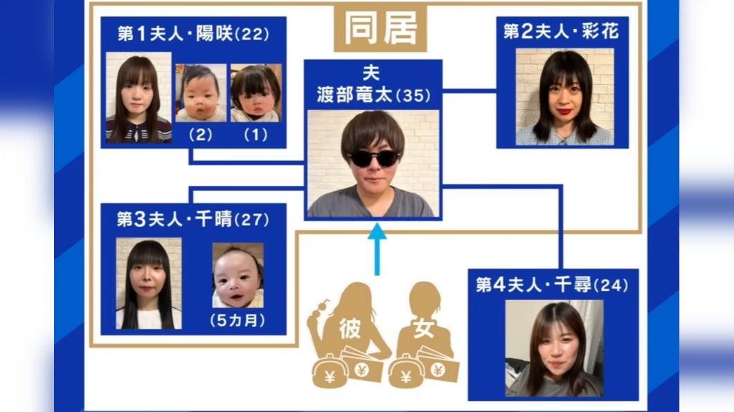 Ryuta Watanabe, 35 tuổi, đến từ Sapporo, Hokkaido, ngoài việc có 4 cô vợ, hiện người đàn ông này còn có quan hệ thêm với hai người bạn gái. Cuộc sống hàng ngày của gia đình anh đã được đưa tin trên chương trình tin tức AbemaTV của Nhật Bản Abema Prime.