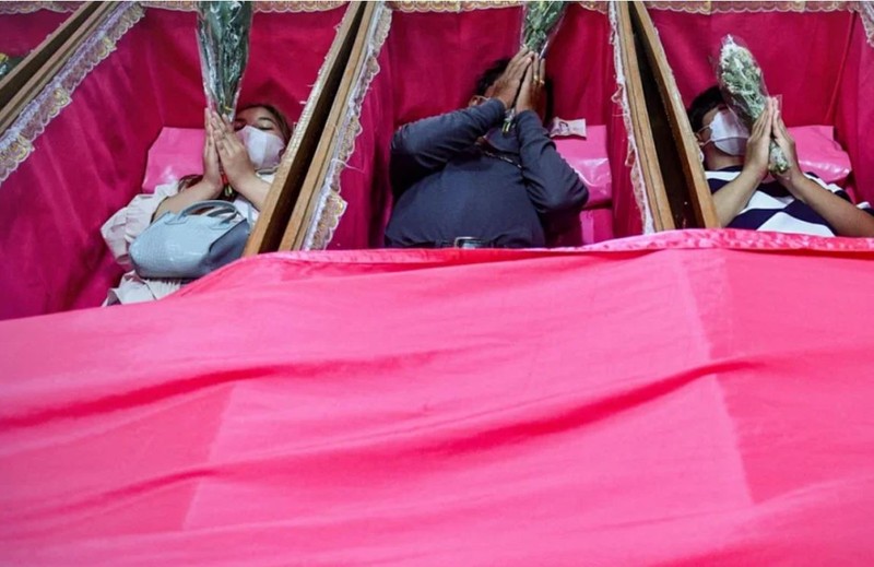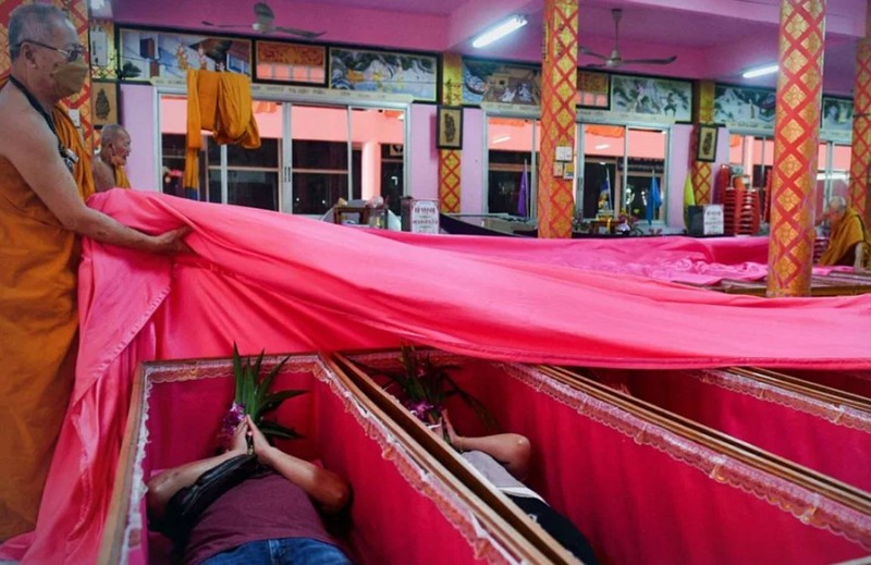 Vào mỗi dịp năm mới, người dân đổ về chùa Wat Takien ở ngoại ô phía tây Bangkok để tham gia một nghi lễ nằm trong quan tài kỳ lạ. Họ tin rằng tục lệ này sẽ giúp loại bỏ những điều xui xẻo và mang lại may mắn cho cả năm.