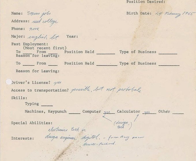 Được biết, một năm sau khi viết đơn, Steve Jobs đã được nhận vào Atari với tư cách là một kỹ thuật viên. Tại đây, ông đã gặp Steve Wozniak. Cả hai sau đó rời Atari và thành lập Apple vào năm 1976.