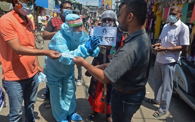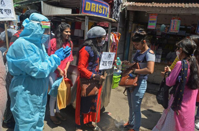 Theo trang Siliguri Times, hôm 23/4 vừa qua, một tổ chức phi chính phủ có tên Unique đã bố trí một số người mặc đồ bảo hộ, đeo găng tay kín mít đi kêu gọi người dân ở thành phố Siliguri, miền đông Ấn Độ đeo khẩu trang.