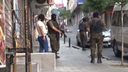Cảnh sát Thổ Nhĩ Kỳ bắt nghi can khủng bố hôm 24-7 tại Istanbul. Ảnh: Daily Mail |