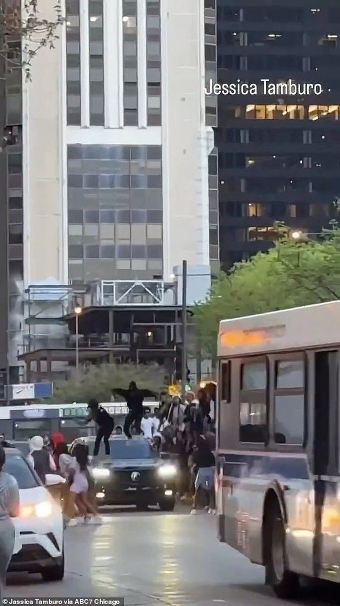 Đoạn video gây sốc cho thấy một số thanh thiếu niên nhảy lên xe buýt trong khi số khác khác bắt đầu cuộc ẩu đả lớn sau khi xông vào công viên Millennium Park và cố vượt qua các rào chắn.