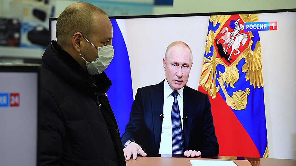 Trong bài phát biểu trên truyền hình, ông Putin kêu gọi dân chúng nên ở nhà vì sự an toàn của chính mình, đồng thời cho các lao động trên toàn đất nước nghỉ việc trong vòng một tuần vẫn trả lương.