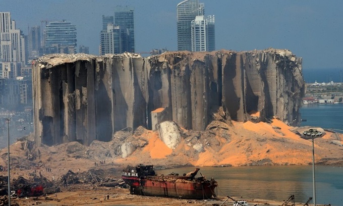 Khung cảnh hoang tàn tại cảng Beirut, thủ đô Lebanon sau vụ nổ ngày 4/8. Ảnh: AFP.