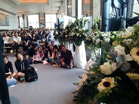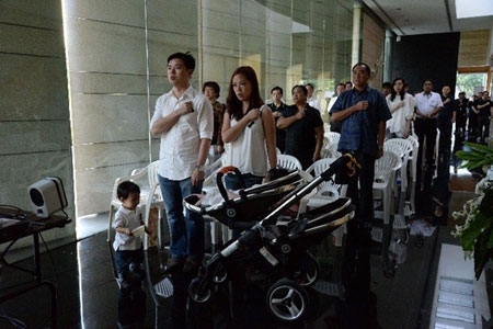 Khoảng 100 người Singapore tập trung tại Đại sứ quán Singapore ở Philippines để tỏ lòng kính trọng đối với cố thủ tướng Lý Quang Diệu. Ảnh: Strait Times |