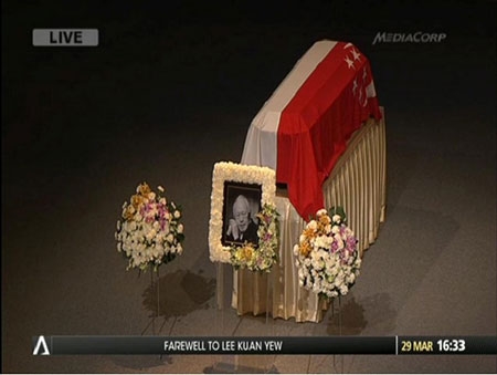 Theo Straits Times, tang lễ cố thủ tướng Lý Quang Diệu sẽ được truyền hình trực tiếp trên sóng truyền hình quốc gia Singapore. Sau lễ rước kéo dài 37 phút, lễ an táng sẽ diễn ra tại Trung tâm Văn hóa Đại học Singapore.