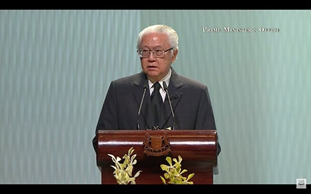 "Cuộc đời ông sẽ truyền cảm hứng cho người dân Singapore, nhiều người dân ở các nước khác và cho thế hệ mai sau. Nỗi đau sẽ đưa người dân Singapore xích lại gần nhau và khiến chúng ta mạnh mẽ hơn", ông Lý Hiển Long phát biểu.