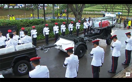 21 phát đại bác tiễn đưa cố thủ tướng Lý Quang Diệu. Ảnh: Strait Times |