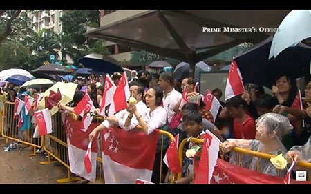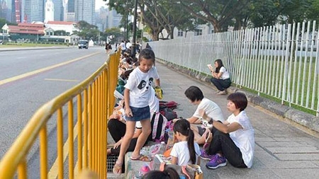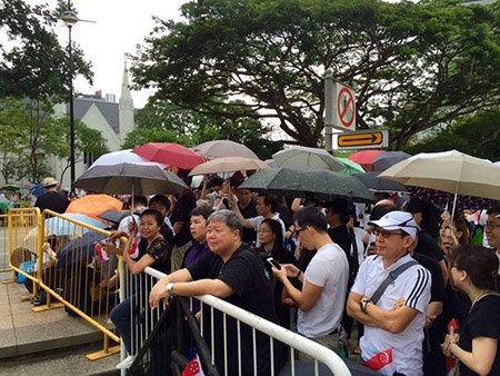 Từ sáng sớm, người dân Singapore bắt đầu di chuyển về khu vực Padang. Hơn 100 người đã tới đường St.Andrew. Joanne Lee, 35 tuổi, nhân viên bất động sản, cho biết cô chờ bạn bè từ lúc 6h45 ở trước tòa nhà Quốc hội. Một đám đông khoảng 30 người đã tới trước cô 45 phút.