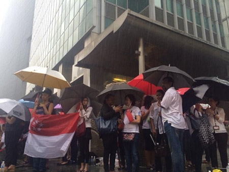 Bất chấp trời đổ mưa to, dòng người vẫn xếp hàng để gửi lời chào tạm biệt cuối cùng tới ông Lý Quang Diệu. Ảnh: Channel News Asia |