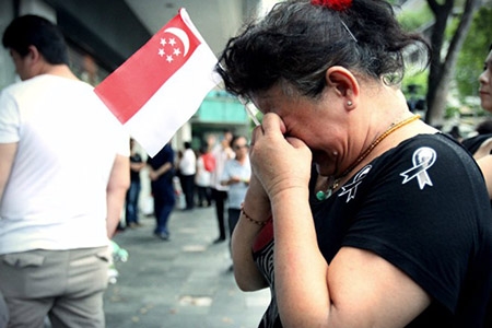 Người dân nghẹn ngào trong buổi sáng tang lễ "người cha lập quốc" của Singapore. Ảnh: Channel News Asia |