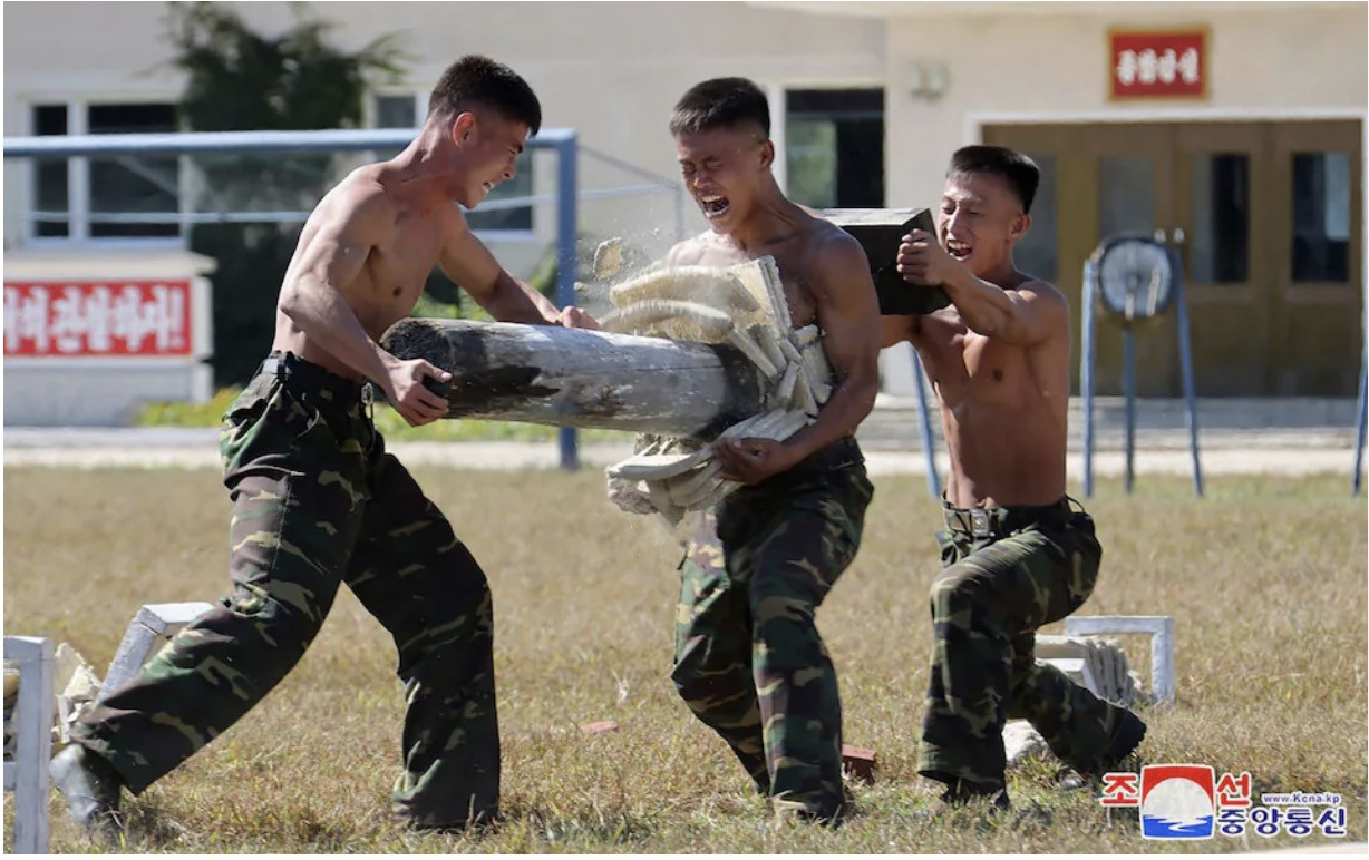 Trước đây, Triều Tiên từng dùng ảnh chụp những người lính cởi trần trong các hoạt động tuyên truyền. Tháng 10/2021, truyền thông của Triều Tiên đã công bố một đoạn video ghi lại cảnh những người lính đập vỡ gạch trên đầu và cánh tay của đồng đội để ngực trần. Các quan chức Triều Tiên, gồm cả ông Kim Jong Un, vỗ tay hoan hô màn thể hiện này.