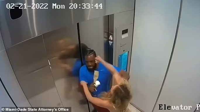 Trong đoạn video clip Daily Mail đăng tải ngày 11-8, Courtney Clenney, 26 tuổi, đã đánh đấm và xô đẩy Christian Obumseli, 27 tuổi, trong thang máy. Christian Obumseli chỉ chống đỡ, không tấn công lại.