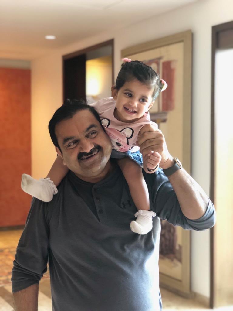 Karan Adani, cha của "cô bé vàng", là con trai cả của tỷ phú giàu thứ 2 châu Á, hiện giữ chức Giám đốc điều hành của Adani Ports và SEZ. Karan Adani sở hữu vẻ ngoài nam tính và có tiếng trên thương trường với những vụ làm ăn lớn.