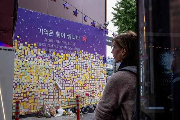 "Chúng tôi vẫn còn những cái tên để ghi nhớ" - tấm bảng tưởng niệm được khắc trên mặt đất tại con hẻm nơi diễn ra thảm kịch kinh hoàng viết. Đã một năm trôi qua kể từ khi diễn ra vụ giẫm đạp Itaewon, một trong những thảm họa chết người tồi tệ nhất trong lịch sử Hàn Quốc, cướp đi sinh mạng của 159 người.