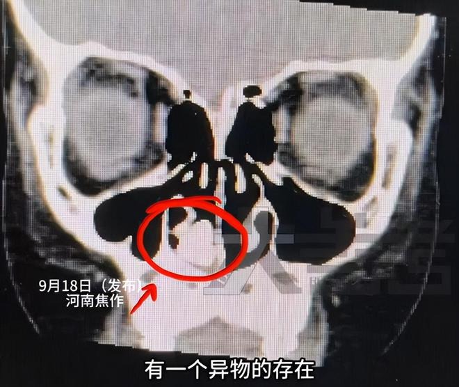 Tuy nhiên gần đây, khi cậu bé càng lúc càng than vãn vì mùi hôi khó chịu, nên gia đình đã quyết định đưa cậu bé đi khám bác sĩ. Khi chụp CT kiểm tra phần đầu của đứa trẻ, họ phát hiện ra một khối u đen bí ẩn nằm bên trong lỗ mũi cậu bé.