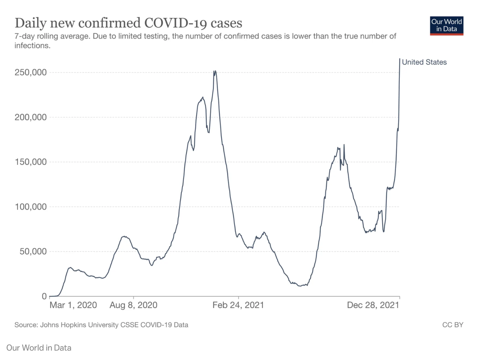 Các biện pháp mô hình hóa cho thấy làn sóng Omicron có thể đạt đỉnh vào giữa đến cuối tháng 1 ở Mỹ, và tỷ lệ ca nhiễm giảm mạnh vào tháng 2.