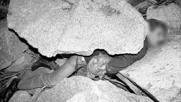Ngày 14/12, một thành viên diễn đàn Quora (diễn đàn chuyên trả lời cho các chủ đề phát sinh trong cuộc sống hay công việc hàng ngày) bất ngờ chia sẻ bức ảnh gây sốc cho thấy một người đàn ông bị tảng đá lớn đè lên người. Nạn nhân trong tư thế nằm sấp và tất nhiên không thể sống sót trong tình huống đáng sợ như vậy.