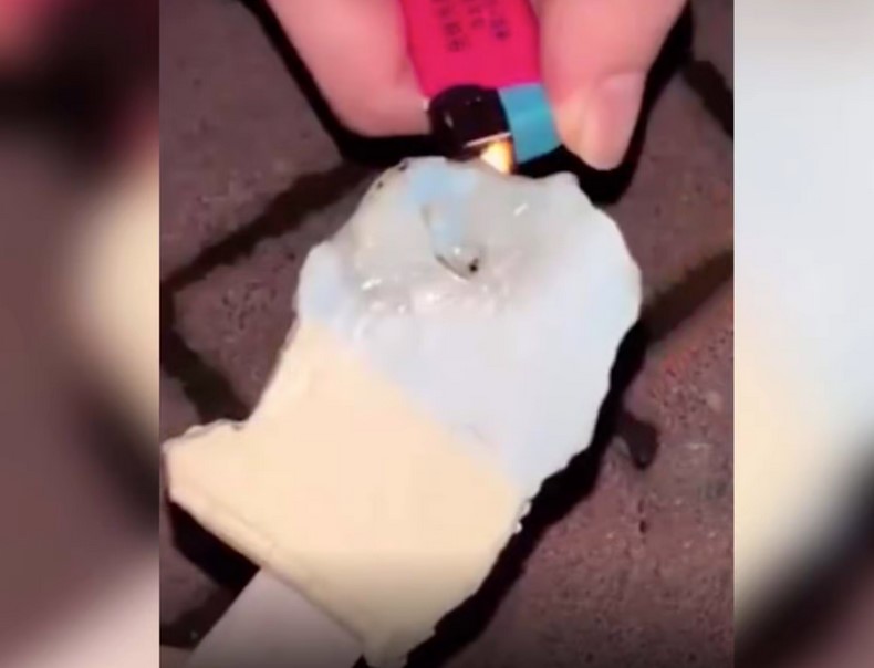 Trong đoạn video có thể thấy khói bốc lên khi ngọn lửa chạm vào kem, và người thử nghiệm cũng nói có mùi thức ăn cháy.