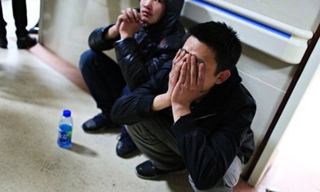 Một người bạn của một nạn nhân trong vụ giẫm đạp có mặt và chờ đợi bên ngoài bệnh viện nơi các nạn nhân được cấp cứu. Ảnh: Reuters |