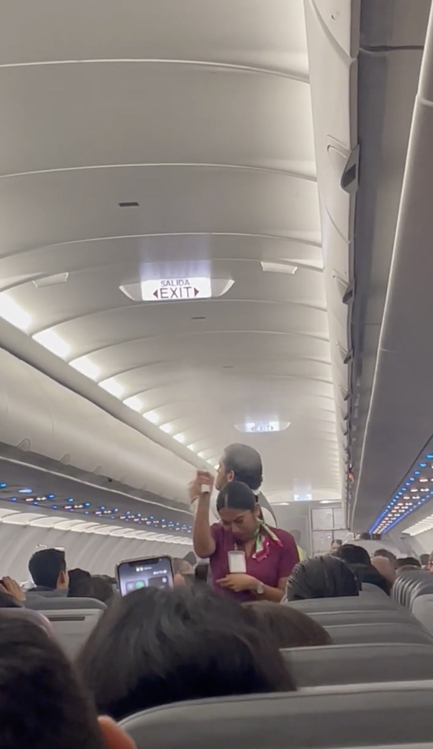 Trong một đoạn video do nữ hành khách có tên Elizabeth Esmeralda Minjarez Corona thực hiện cho thấy, khi hành khách vừa ổn định chỗ ngồi thì các tiếp viên hàng không đã phải rất vất vả đi cầm những bình xịt côn trùng liên tục phun xung quanh tạo thành những đám mây mù để xua đuổi đàn muỗi.