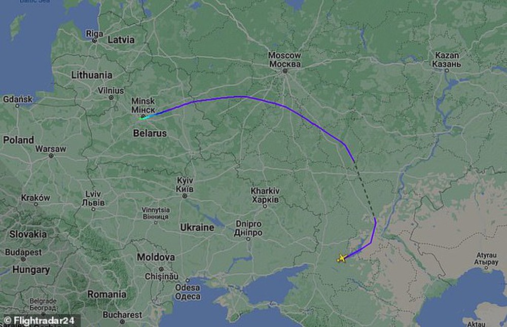 Theo trang web theo dõi chuyến bay Flight Radar 24, máy bay này xuất phát từ một địa điểm không xác định gần TP Rostov-on-Don, bay vòng sang Ukraine qua không phận Nga, trước khi hạ cánh xuống Minsk.