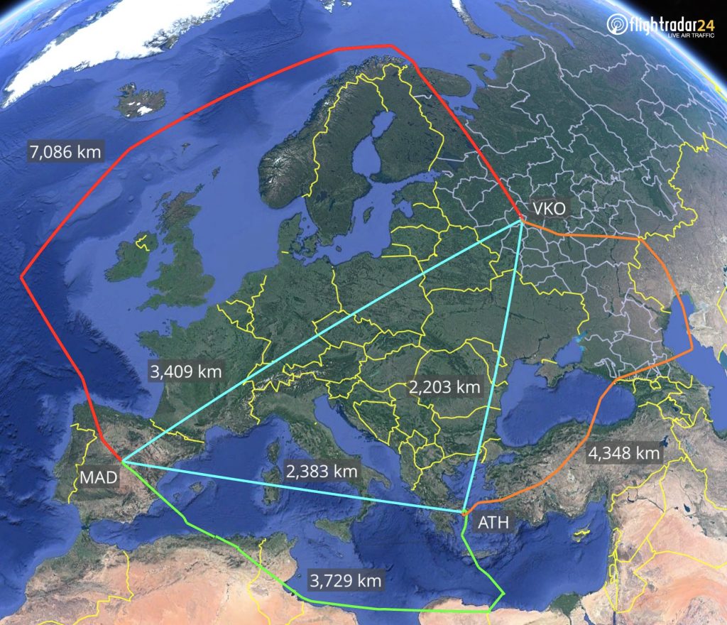 Chặng đầu tiên của máy bay xuất phát từ Moscow tới Tây Ban Nha rất dài. Chuyến bay buộc phải ở trong không phận quốc tế và chỉ được nhập cảnh tại Tây Ban Nha, khiến quãng đường di chuyển tăng gần gấp đôi so với khoảng cách bình thường.