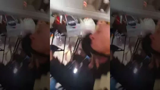 Đoạn video cũng ghi lại cảnh một hành khách ướt sũng đang cầu nguyện, trong khi xe chở đồ uống rơi xuống. Máy bay chở 121 hành khách sau đó hạ cánh an toàn và xe cứu thương túc trực nhanh chóng hỗ trợ y tế cho những người bị thương.