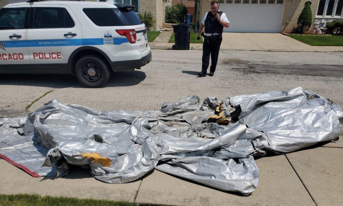 Fox News đưa tin cảnh sát Chicago nhận được cuộc gọi trình báo về vụ việc từ một người dân sống trung khu vực phía Tây Bắc thành phố. Cầu trượt được tìm thấy trong sân sau của một hộ dân. Cảnh sát Chicago cho biết hiện FAA chịu trách nhiệm điều tra vụ việc.