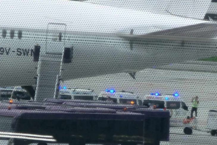 Hình ảnh ban đầu cho thấy xe cứu thương đã có mặt trên đường băng ở sân bay Suvarnabhumi. Hình ảnh khác cho thấy thức ăn vương vãi khắp lối đi của chiếc Boeing 777 của Singapore Airlines.