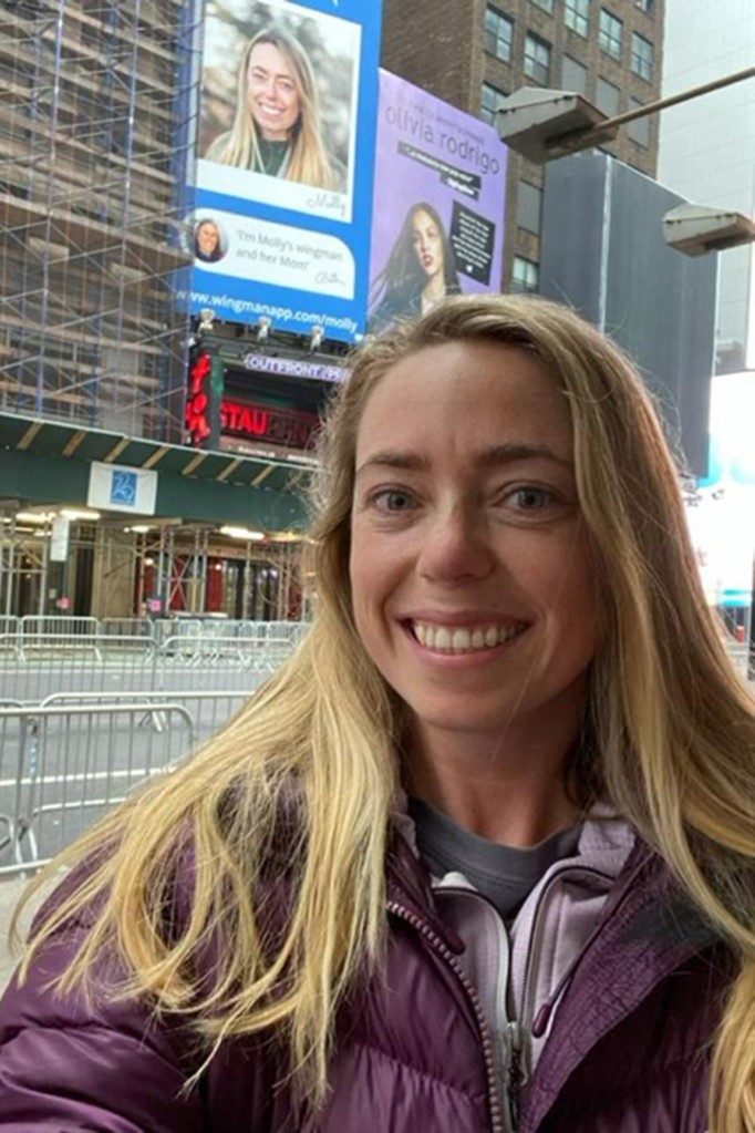 Vậy là tuần trước, một tấm biển quảng cáo cực lớn in hình Molly cùng đường link hồ sơ hẹn hò của cô đã xuất hiện chễm chệ ngay tại ngã tư nổi tiếng thế giới ở New York.
