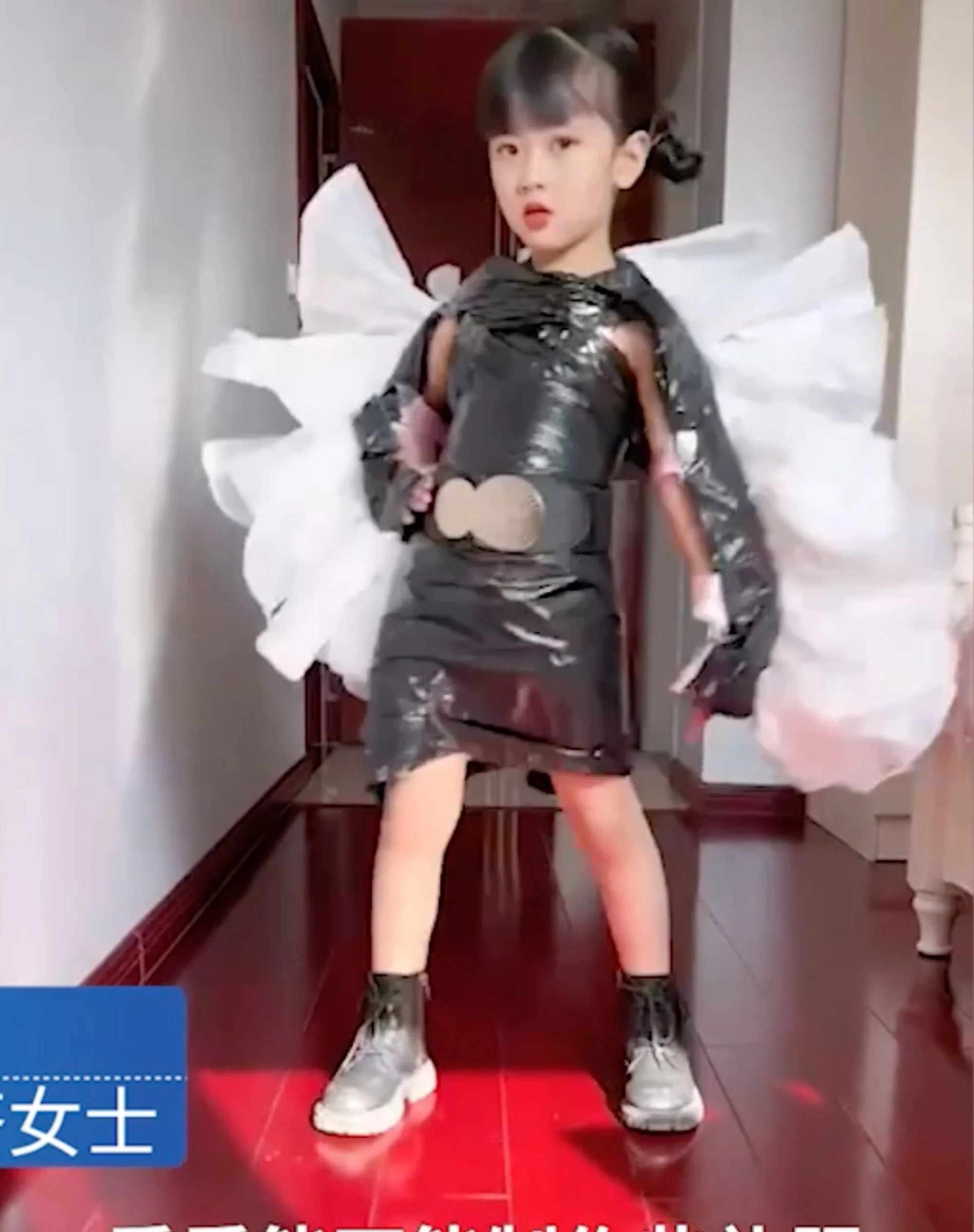 Theo Bưu điện Hoa Nam buổi sáng (SCMP), bé gái đến từ tỉnh Sơn Đông, miền đông Trung Quốc đã trở nên nổi tiếng trên mạng xã hội nhờ màn trình diễn thời trang tại nhà khi mặc những chiếc váy mà mẹ em làm từ túi rác tái chế.