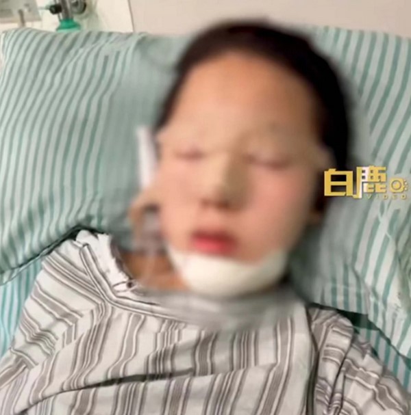 Video cho thấy nữ sinh trong bệnh viện, mũi và cằm quấn băng. Sau vài ngày, nữ sinh đợc xuất viện. Bà Phùng rất hài lòng với kết quả.