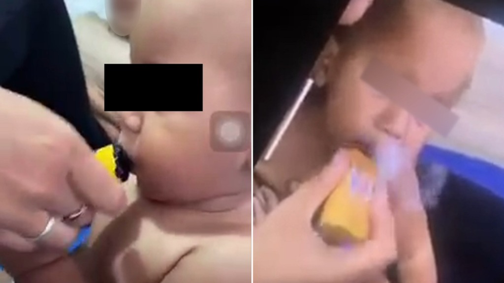 02/03/2023 21:40Mẹ cười thích thú khi con trai 11 tháng tuổi ho sặc sụa vì bị ép hút thuốc lá điện tử