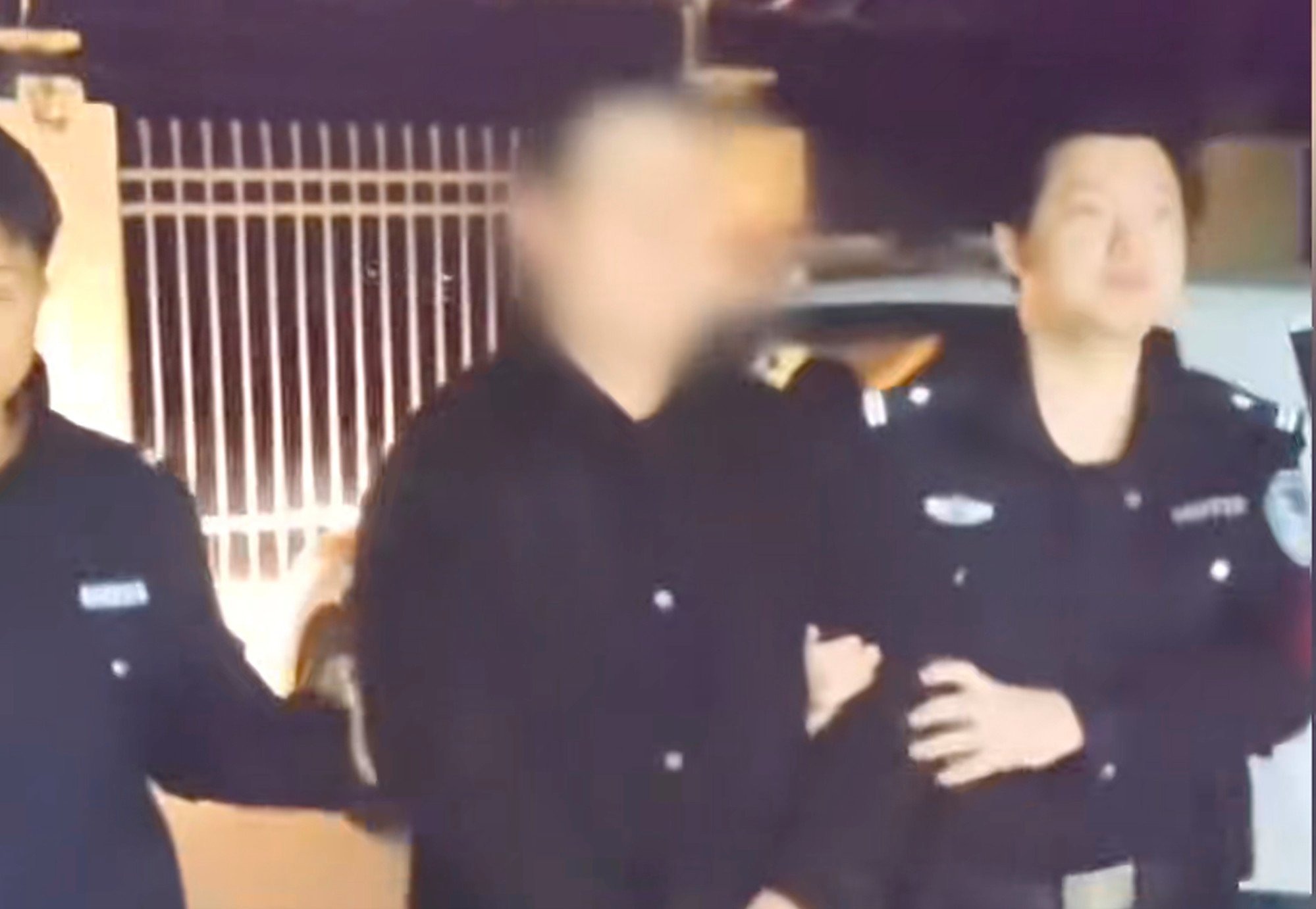 Cảnh sát sau đó dìu người thanh niên đứng dậy và tra còng vào tay anh ta để đưa đi, để lại người phụ nữ đứng chôn chân với hai hàng nước mắt.