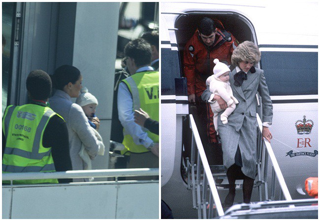Bé Archie xuất hiện đáng yêu trong chiếc mũ bobble màu trắng đáng yêu. Trang phục của bé Archie gần giống với trang phục mà Hoàng tử Harry mặc vào tháng 1/1985, khi anh gần 4 tháng tuổi. Vào thời điểm đó, Hoàng tử Harry cũng được Công nương Diana bế ra khỏi máy bay trong một chuyến đi.