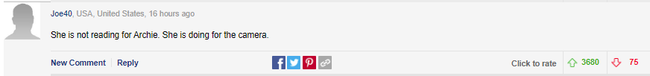 Nhiều ý kiến nói rằng, Meghan Markle tương tác với ống kính nhiều hơn là với đứa con của mình. Trong đoạn video ngắn chưa đầy 3 phút, vợ của Harry được trông thấy thường xuyên nhìn thẳng về phía ống kính và tập trung giới thiệu quyển sách hơn là chú ý đến bé Archie trong lòng.