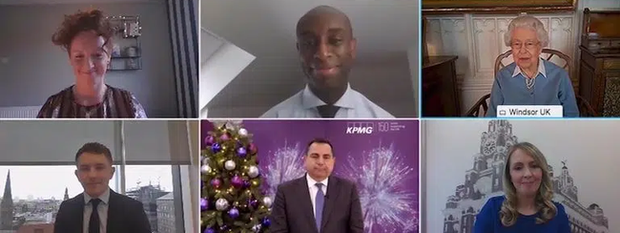 Trong lần xuất hiện mới nhất này, Nữ hoàng Anh đã tham gia cuộc gọi trực tuyến với công ty kế toán KPMG nhân kỷ niệm 150 năm thành lập của họ. Bà đã lắng nghe 4 nhân viên của công ty kể về những khó khăn và thử thách mà họ đã trải qua trong thời gian đại dịch bùng phát.