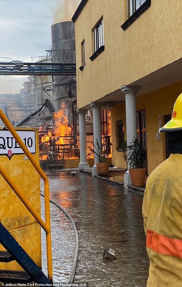 Cơ quan Phòng vệ Dân sự Jalisco cho biết trong một tuyên bố rằng vụ nổ lan sang một khu vực của nhà máy chưng cất, khiến mỗi thùng trong số ba thùng chứa này làm đổ 219.000 lít rượu tequila.