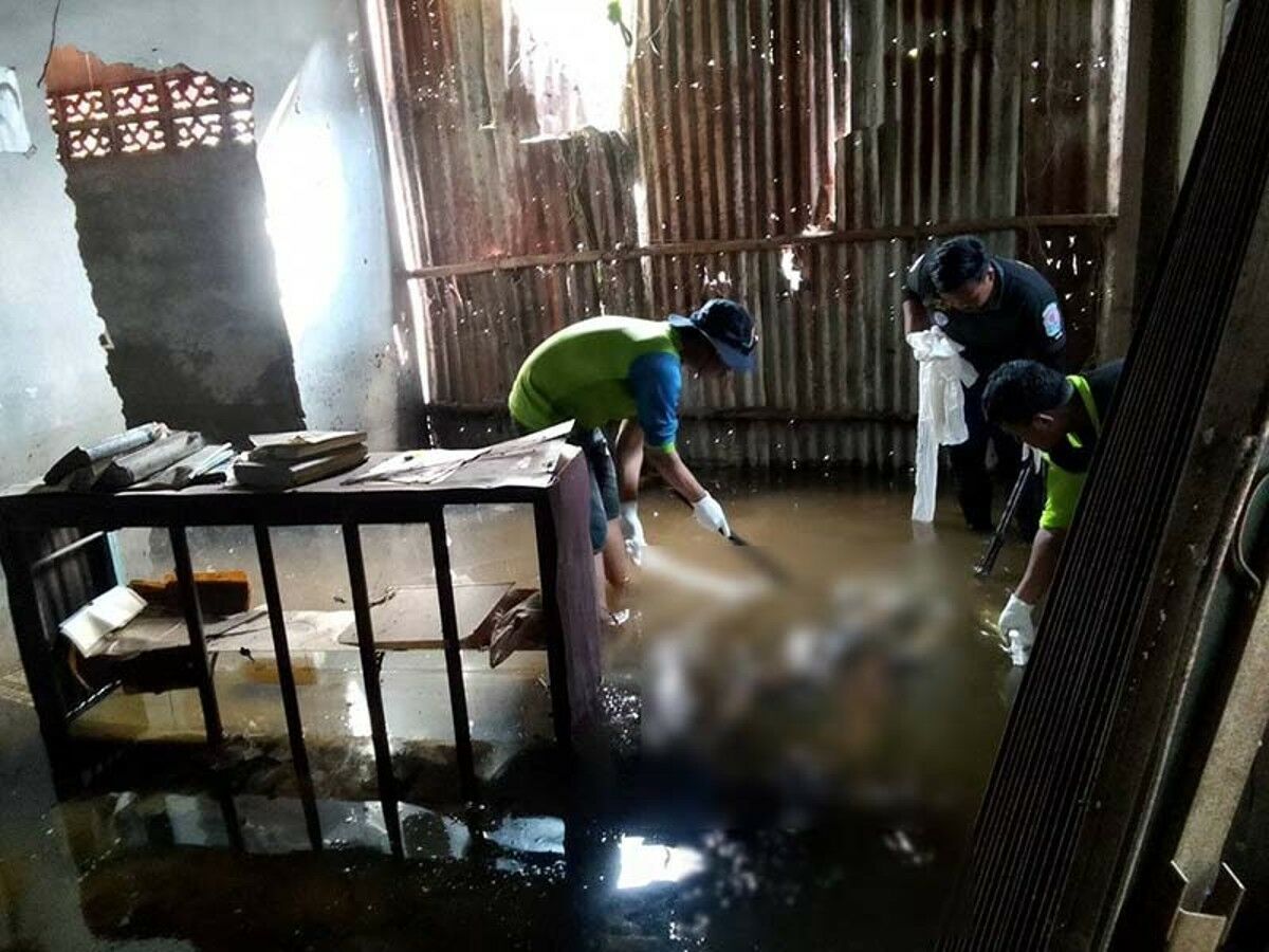 Tại ngôi nhà nửa gạch, nửa gỗ ở Ban Sila Lek, lực lượng chức năng phát hiện thi thể một người đàn ông mặc áo phông, quần đùi. Thi thể đã phân hủy nặng và ngập trong nước, đầu nằm dưới bàn chân phải. Không tìm thấy giấy tờ tùy thân trên thi thể.