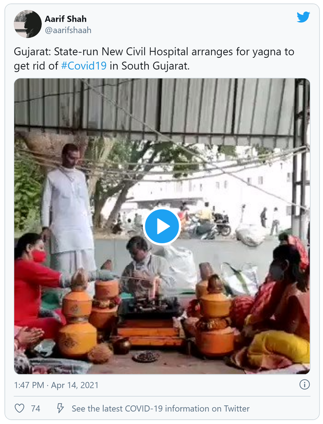 Trong tình hình căng thẳng như vậy, một bệnh viện ở thành phố Ahmedabad của Gujarat đã quyết định cầu thần linh phù hộ, trong khi ở phía bên ngoài bệnh viện là hàng trăm xe cấp cứu chở bệnh nhân dương tính với SARS-CoV-2 đang rồng rắn nối đuôi nhau. Hình ảnh đã được dân mạng Ấn Độ chia sẻ vào đầu tuần trước.